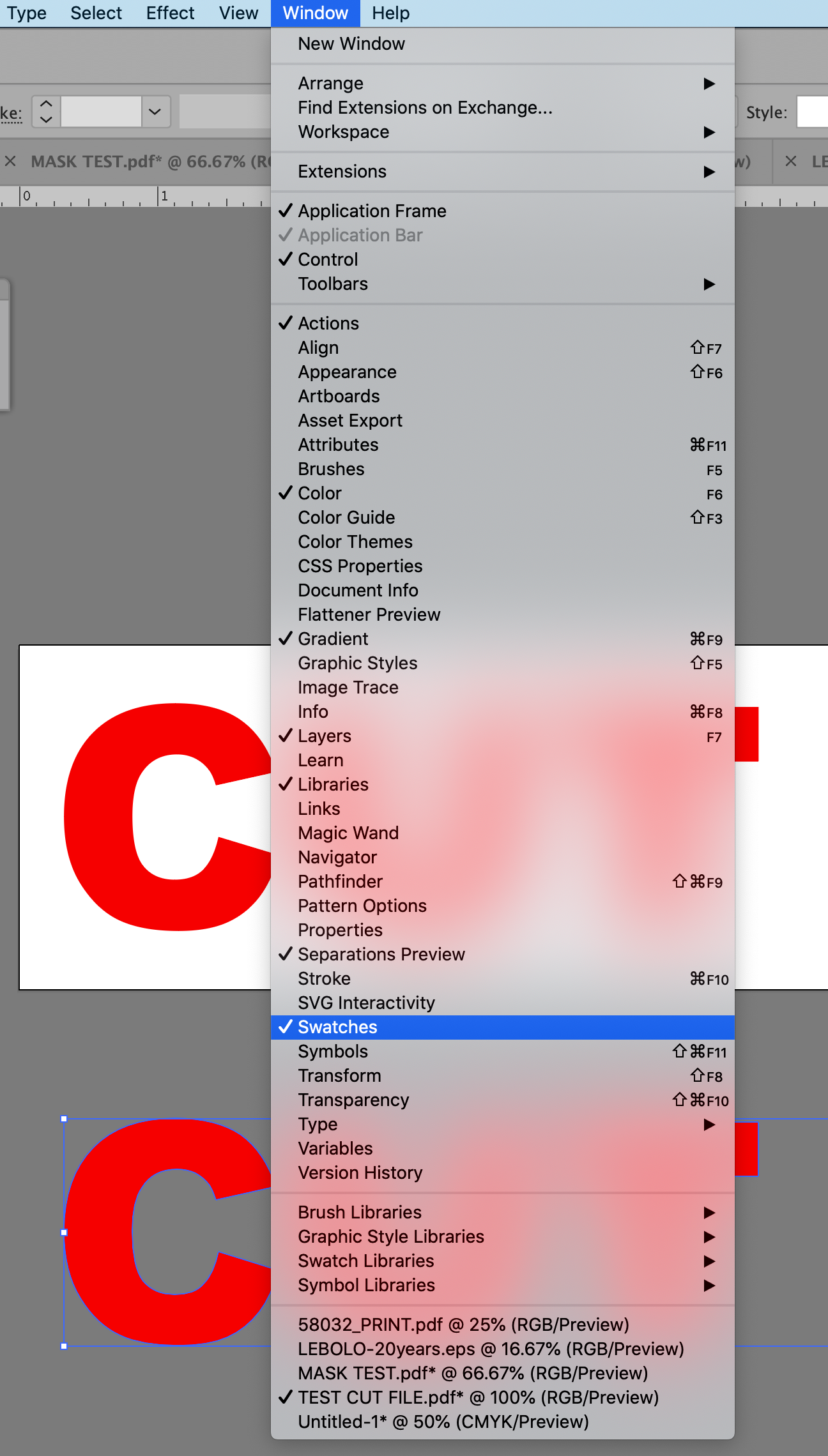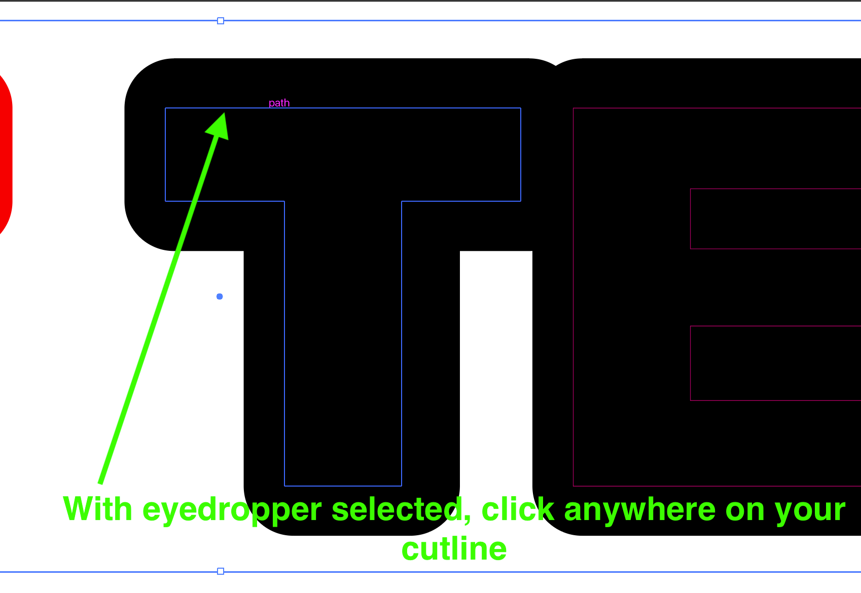 Now that we have a CutContour swatch generated we can apply it to the file where we want the cut to occur. In this example we want to cut each individual letter out so the cut line will need to go around each letter.