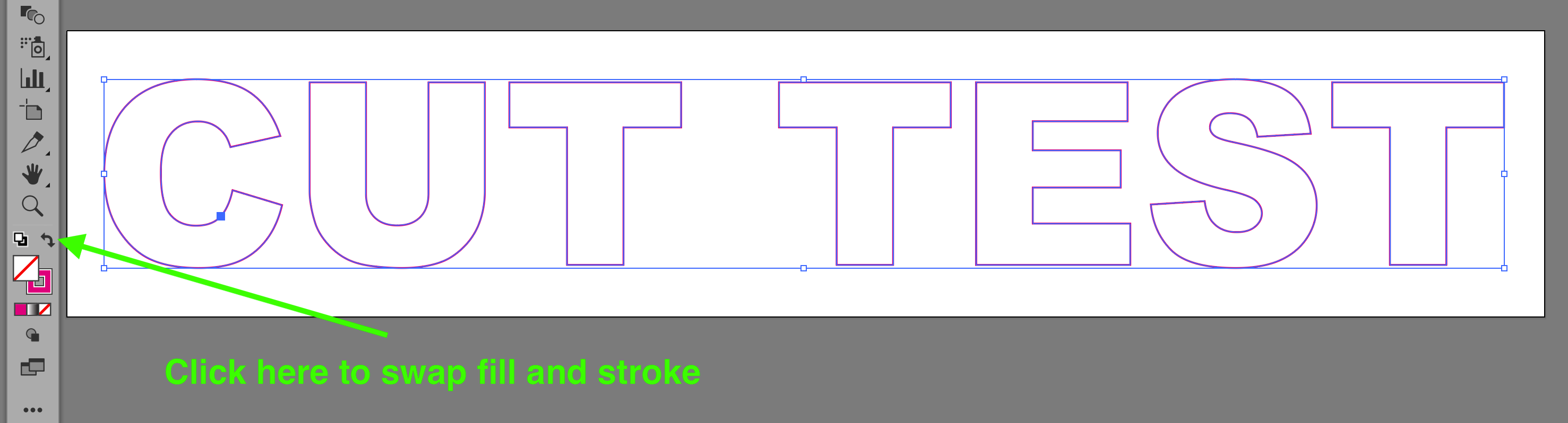 3.) By clicking on the swatch we have added a fill to the original artwork, however in order for Caldera to read the cut line this must be converted to a stroke. To do this, click on the switch fill and stroke button at the bottom of your primary tool panel just above and to the right of your fill and stroke boxes.