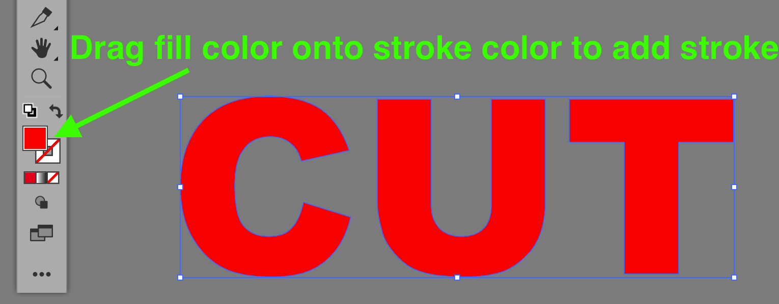 2.) With all red portions of the artwork selected, add bleed by dragging the fill color box onto the stroke color box.