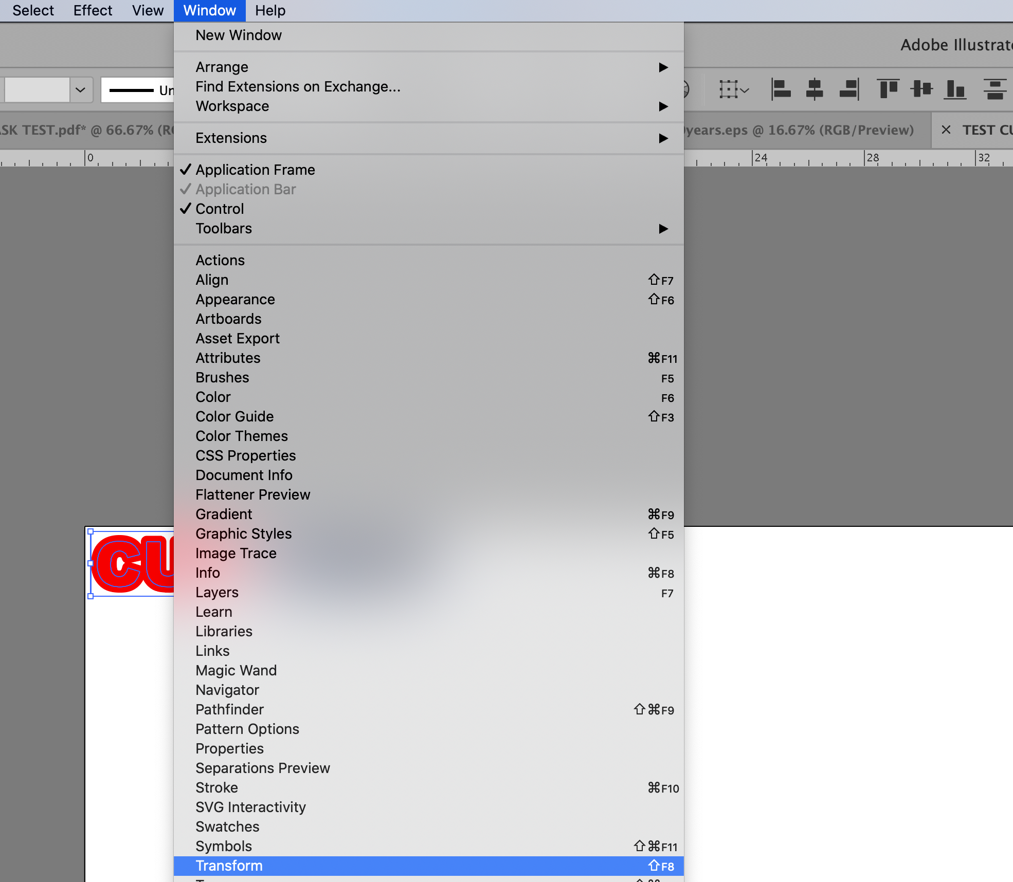 8.) To rotate the object, open the transform tool panel by clicking "Window>Transform" from main menu.