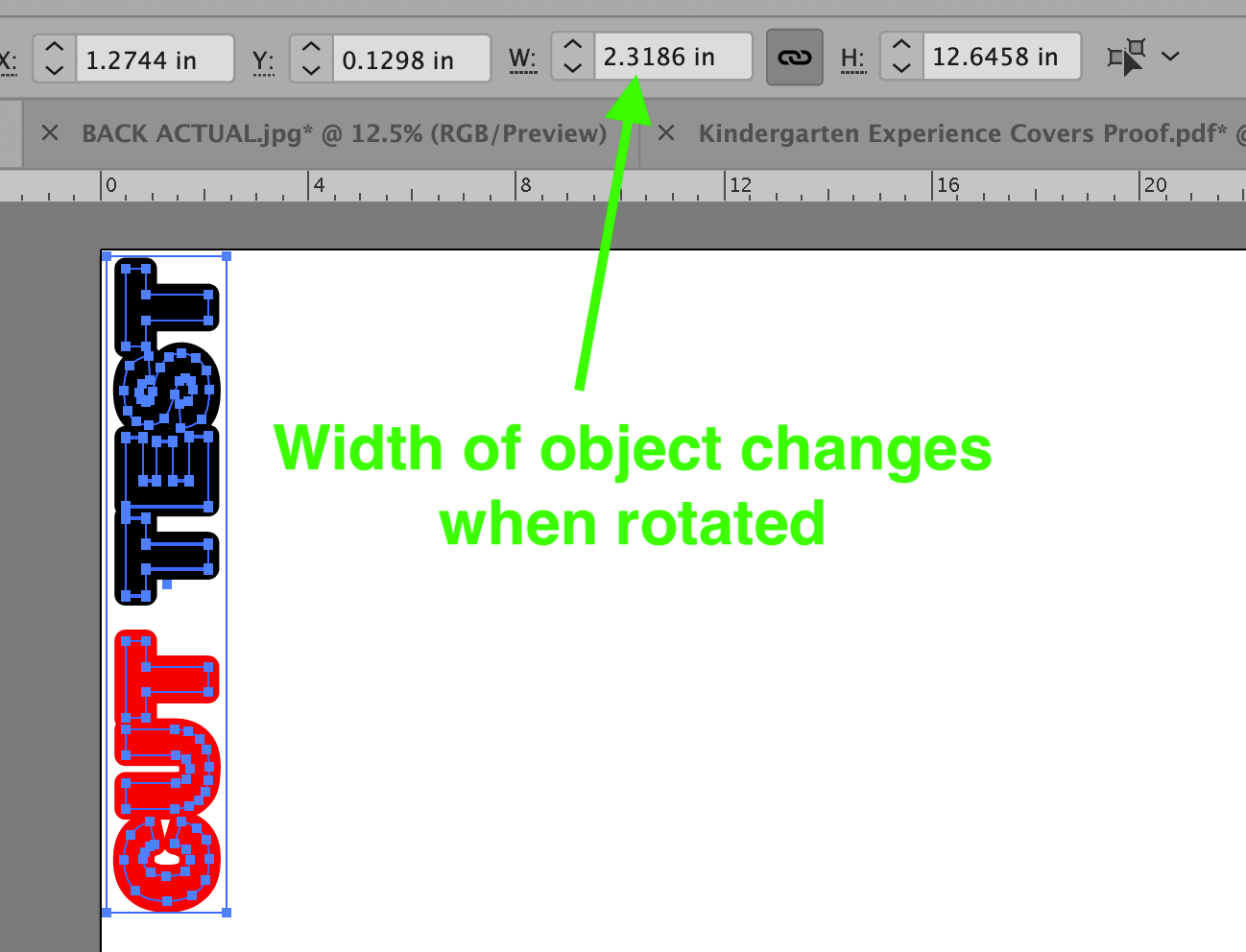 With objects still selected we need to determine a suitable distance to move the object in order to create a duplicate that is optimally spaced for printing as well as weeding. To do this, you will typically add a minimum .125" to the width of the objects and use that value in the move dialog box **NOTE your values may differ slightly from this example depending on how big you made your outer cut rectangle.. The width of your objects will be displayed in the top tool panel.