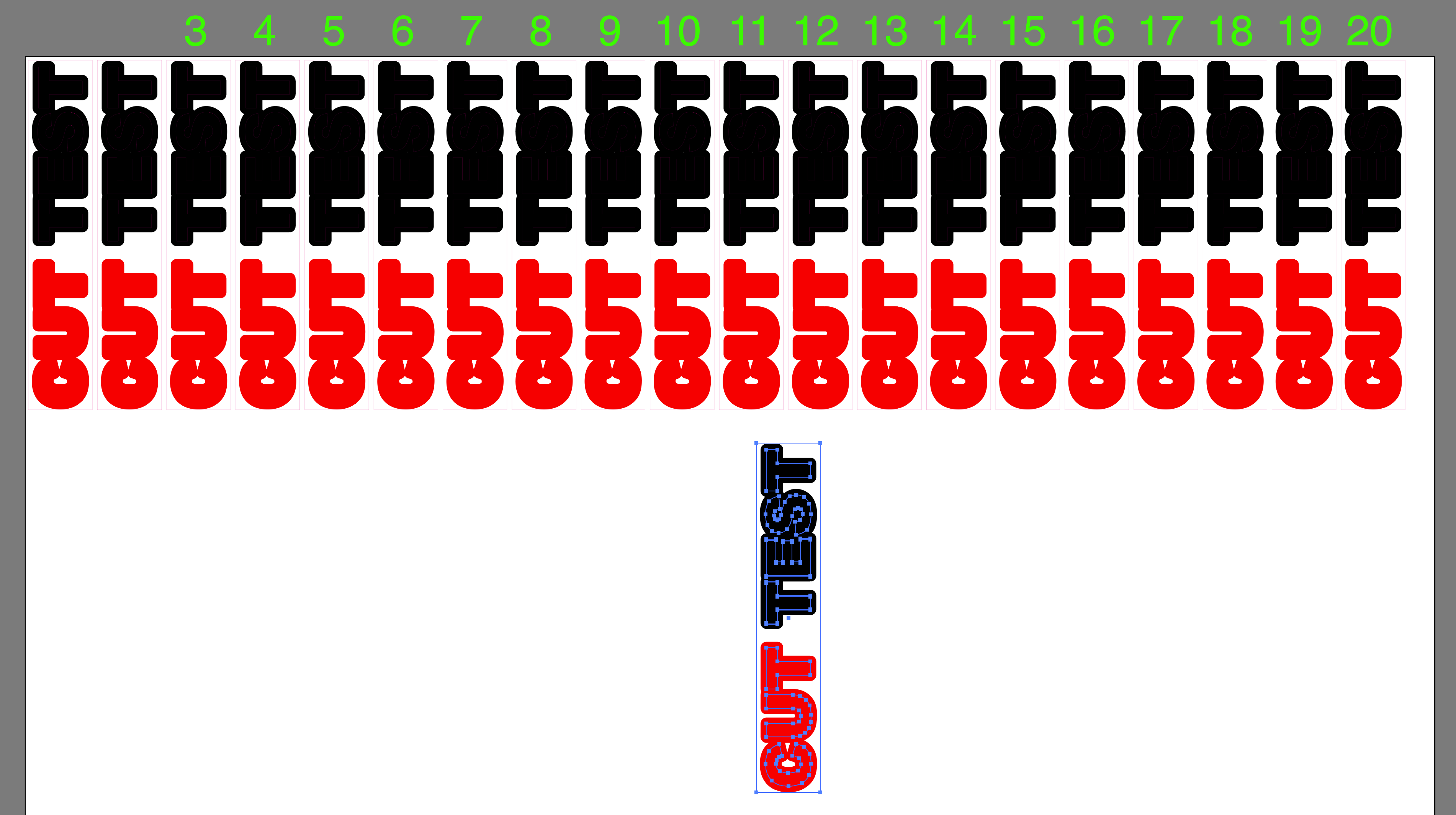 Determine areas to be cut from customer specifications, in this example the customer has requested all letters be cut out and wants 25 red/black and 25 white.