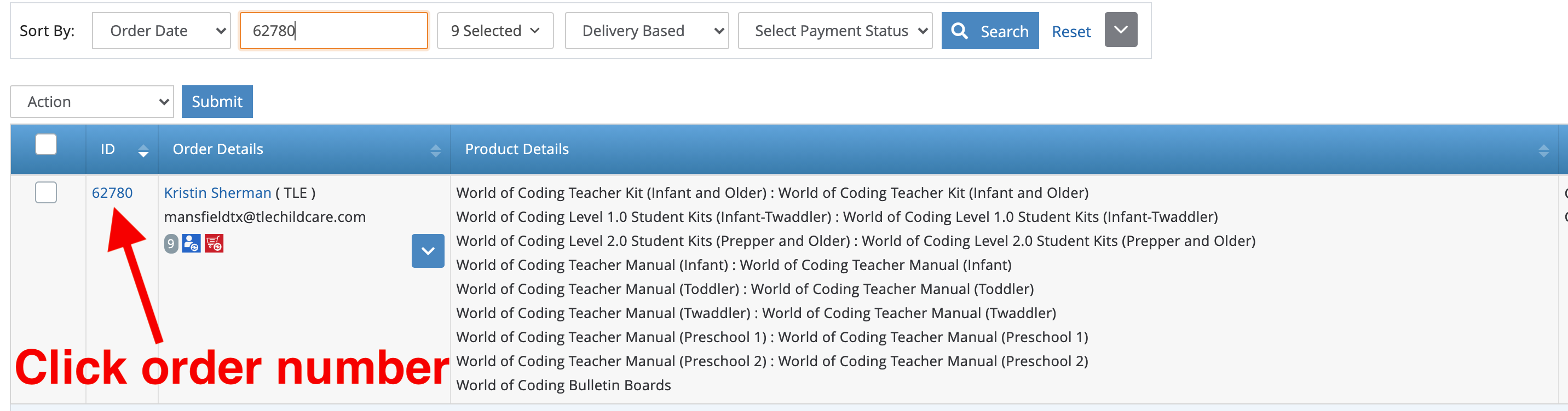 We now need to generate shipping labels for the boxes we have calculated. On the backend, navigate to the order number you are generating labels for and click on the order number.
