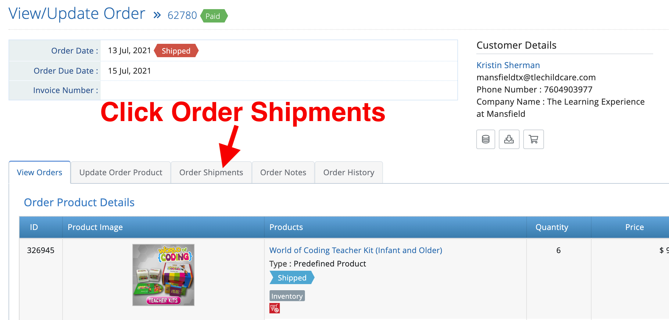 Click on "Order Shipments"