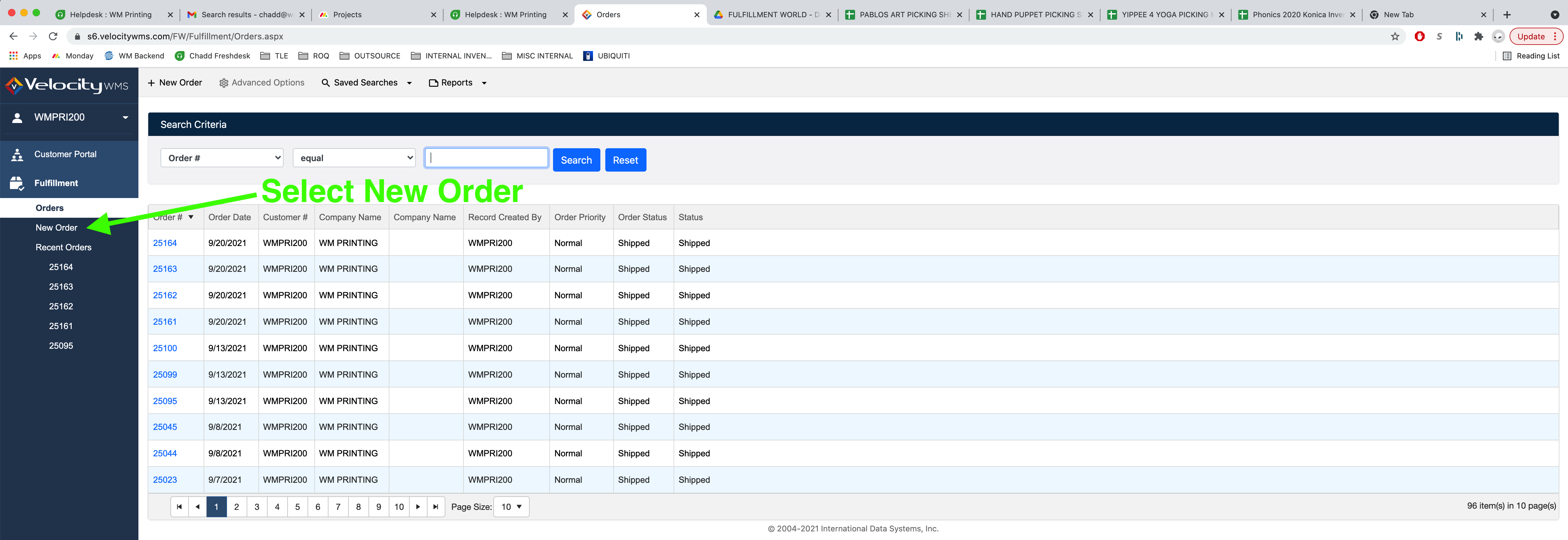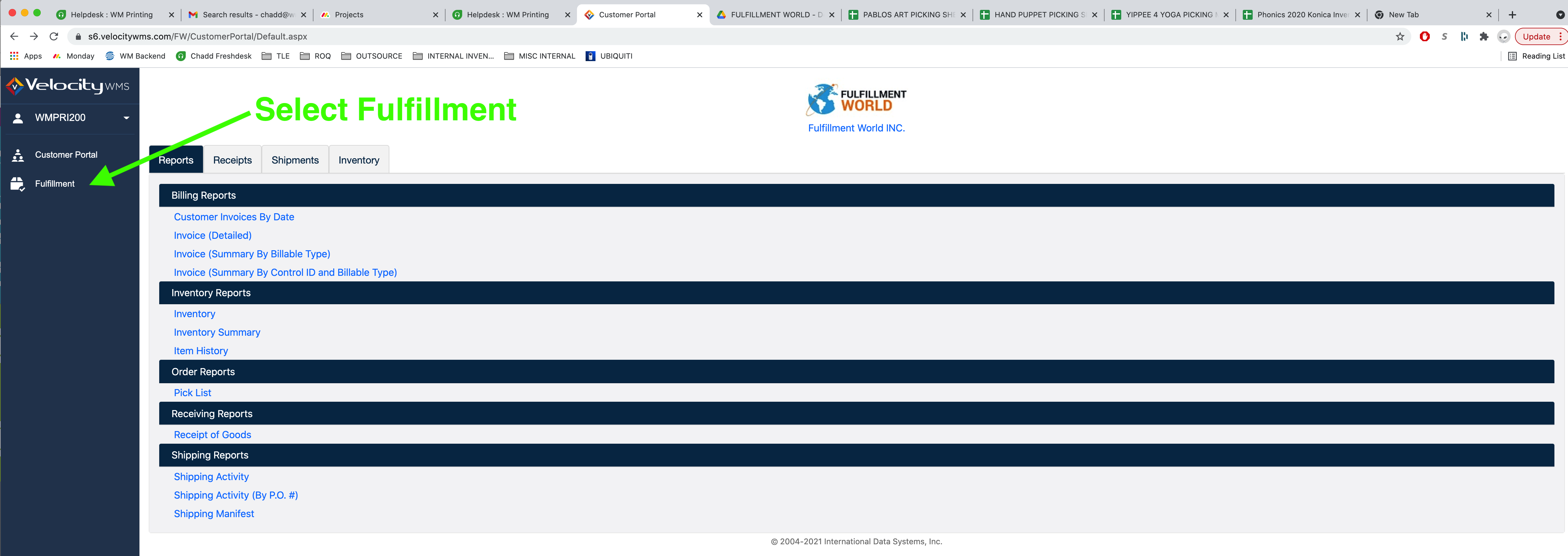 At this point, we have completely filled out the google document and exported it as an excel sheet. We also have generated and downloaded all shipping labels of open orders needed for the products we are looking to ship. From here we will now enter the backend of Fulfillment World and place a new order to ship from their facility.