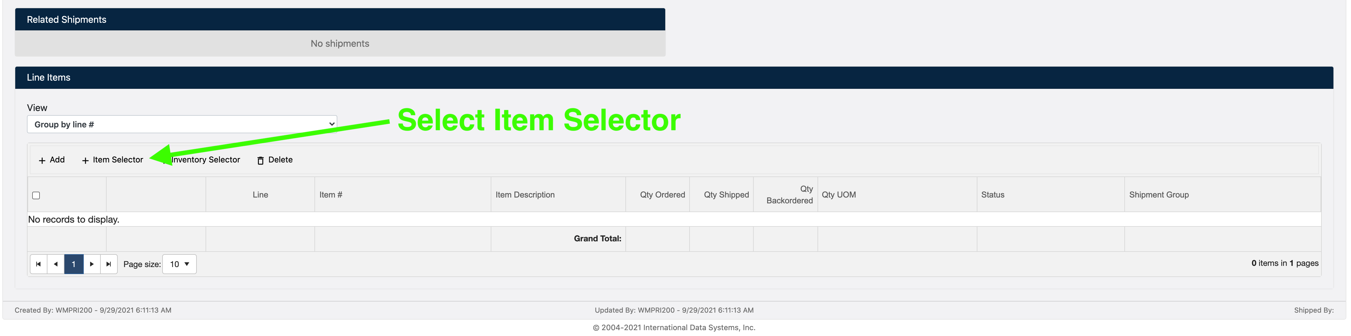 Once saved you will now be able to select inventory from new fields at the bottom of the screen. From these new fields select Item Selector.