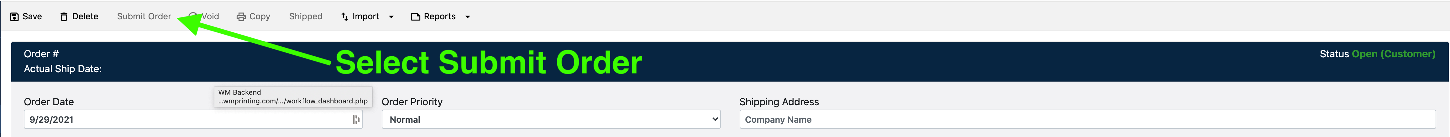Once you have clicked Add Items to Order, click on Submit Order from the main menu bar at top of screen.